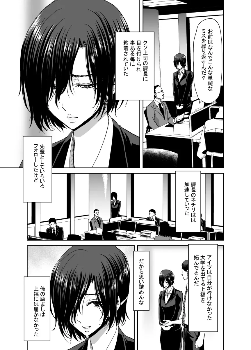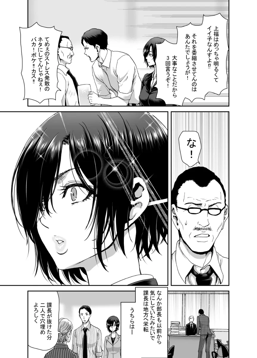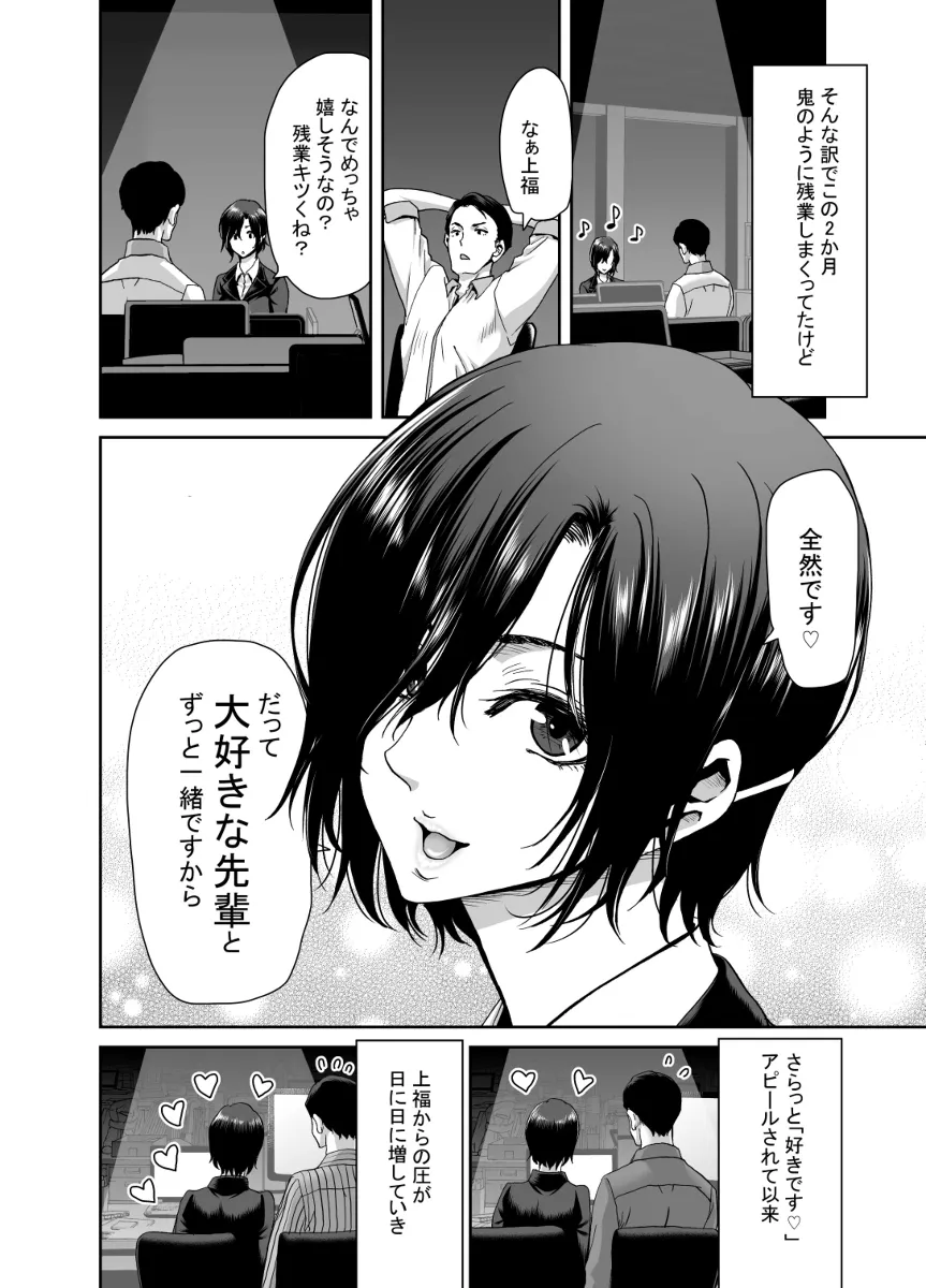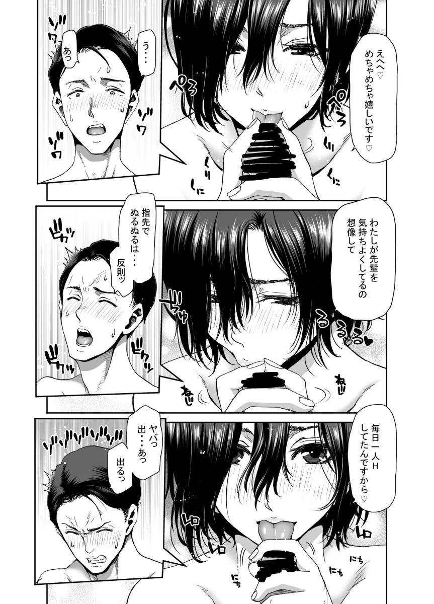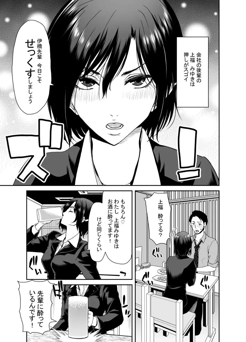 会社の後輩の上福みゆきはとにかく押しが強かった。しかしちょっと前はこんなんじゃなかった。みゆきは課長のパワハラを受けていたのだ。みゆきになんとか元気を出してもらいたく先輩の伊橋は試行錯誤するもうまくいかず…。そして、ついに飲みの場でパワハラを受けていたみゆきを見かね、課長に対して暴言を吐いてしまう。それ以来、みゆきは自分を庇ってくれた伊橋のことが好きになってしまったのだ。部長も課長のことを気にしていたようで、今回の一件で課長は地方に転勤。その穴を伊橋とみゆきで埋めることに。残業続きだったが、なんとか落ち着き…。気が付くとラブホでみゆきにチンポをしゃぶられていた…。