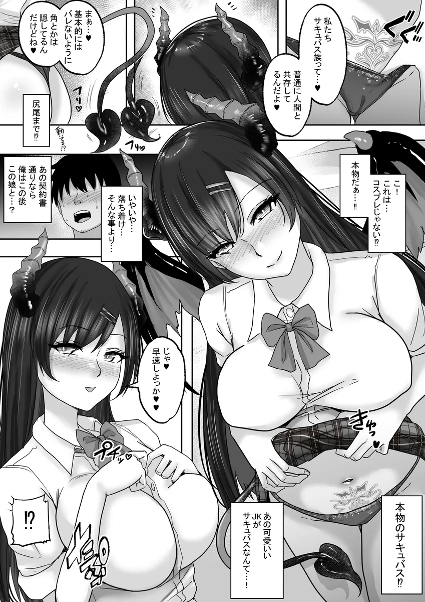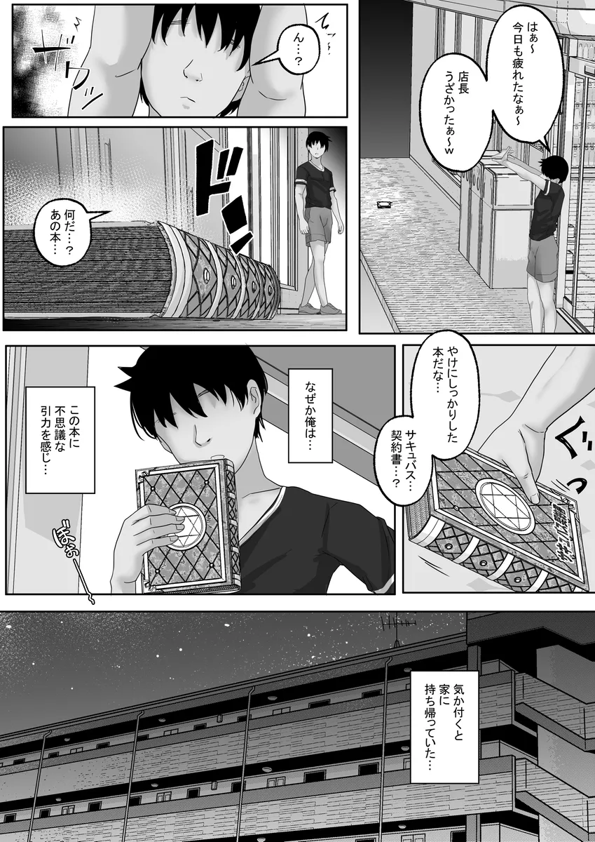 琢郎は底辺コンビニ店員で未だに童貞。バイト終わりにたまたま駐車場に捨てられていた本を拾って家に持ち帰る。その本にはサキュバス契約書と書かれていた。この本に名前を書くと、サキュバスに精子を提供する義務が生じる代わりにサキュバスによるメンタルケアが受けられるのだとか。琢郎は半信半疑のその本に自分の名前を書く。すると翌日、見知らぬ女の子は琢郎の部屋を訪れる。そう彼女がまさにサキュバスだったのだ。マン土手にはいやらしい淫紋が浮かび上がっている。そして、本物の生おっぱいに吸い付く琢郎。ついにサキュバスマンコで童貞を卒業する瞬間が訪れる…。