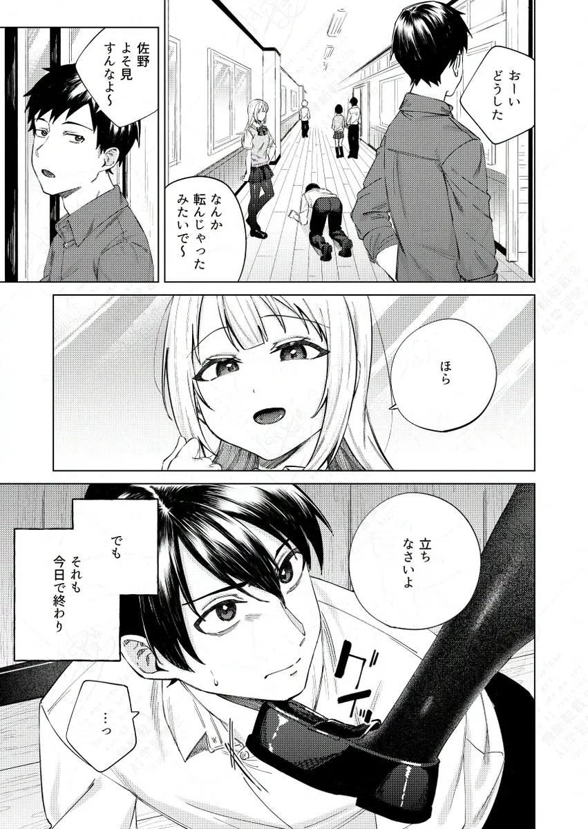 入学してから三年間、佐野はずっと高飛車ギャルJKの高宮に虐められてきた。しかしそんな日々とももうおさらばだ。佐野は高宮の弱みを握ったのだ。それは昨日の放課後。教室で担任の先生と高宮が二人でいるところを佐野が目撃。しばらくするとすり寄って高宮が先生のチンポをしゃぶりだしたのだ。すかさず録画ボタンを押す佐野。高宮は先生におねだりしてザーメンを顔面にぶっかけられる。高宮も高飛車ギャルJKだが、根はただのチンポに興味津々な女の子なのだ。そして、翌日佐野はその動画を高宮に突きつける―。