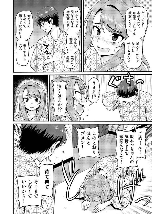 巨乳 彼女 血まみれ屋敷 混浴温泉でマンコ丸出しな彼女!彼氏のご機嫌取りに中出しエッチw 11月 9, 2022 11月 9, 2022 作品名:ゲーム友達の女の子と温泉旅行でヤる話 作者:血まみれ屋敷 ゲーム仲間である彼女と温泉旅行にやって来た彼氏。彼女は先に温泉に入っており慌てて後から駆け付けると男二人に囲まれていた。彼女は恥ずかしげもなくおっぱいとまんこを丸出しに。さらに上がり際におまんこをくぱあして見せる。それを見た彼氏は不機嫌に。俺だけのまんこだと思っていたのに!そんな彼女は彼氏のご機嫌取りに中出しエッチを許容するのだが―。 このエロ漫画の続きを読む