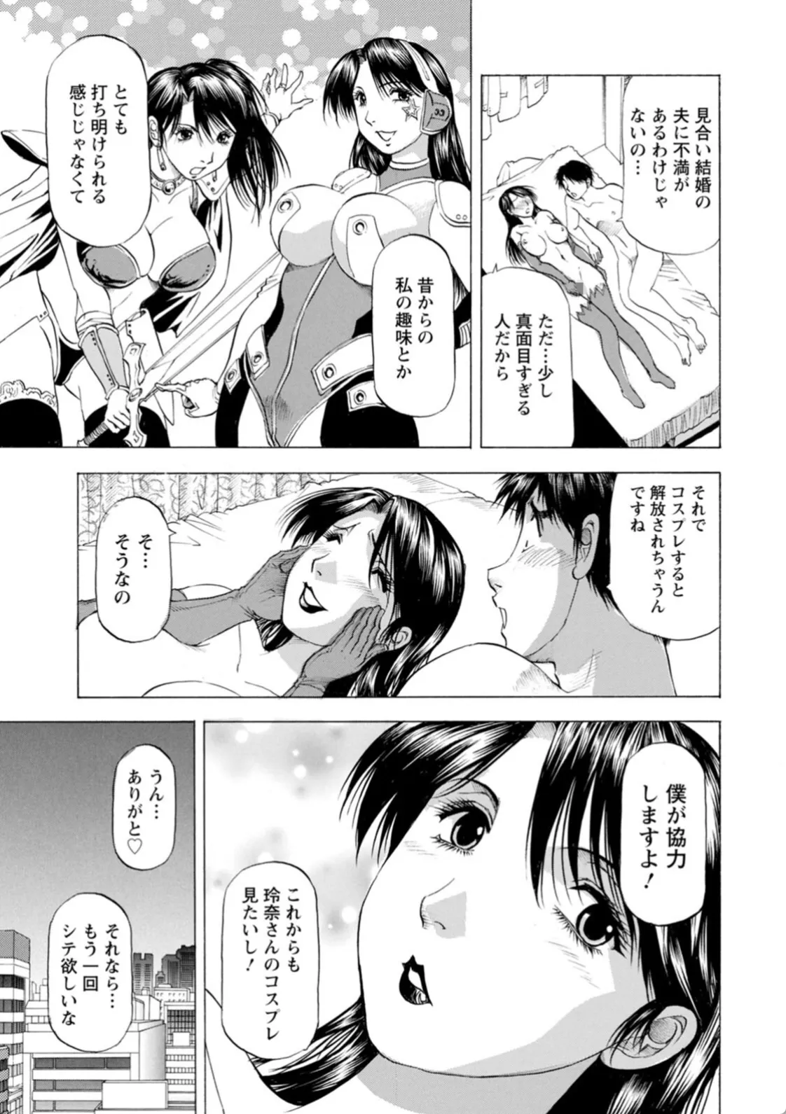 朝隣の奥さんとあいさつを交わすだけでテンションが上がる男。これがささやかな楽しみとなっていた。ある時、コスプレイベント会場で隣の奥さんによく似たコスプレイヤーを発見する。ちらっとその姿を見ただけでその場限りで終わったのだが、後日玄関のチャイムが鳴る。出てみるとそこには隣の奥さんがいた。あのコスプレイヤーは隣の奥さんだったのだ。男はそのコスプレが好きなのもあり、自宅で奥さんにコスプレをしてもらって撮影会するまでになる。当然それだけで終わるはずもなく…。
